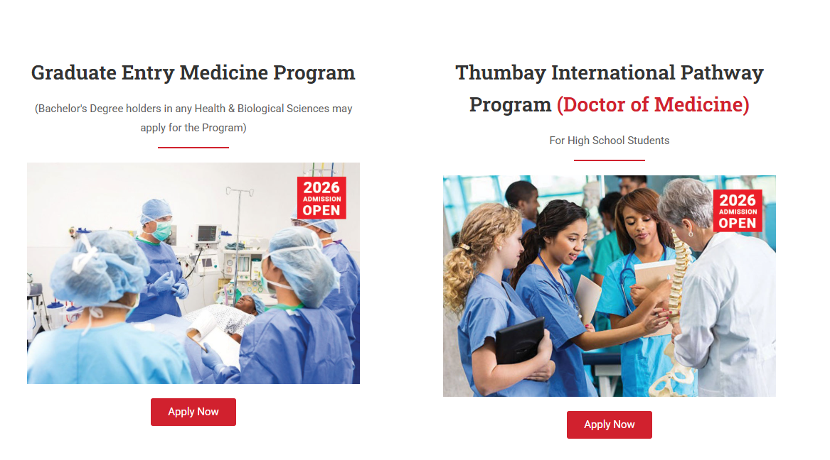 The collaboration offers the Graduate Entry Doctor of Medicine (MD) program, a fully accredited curriculum aligned with international standards.