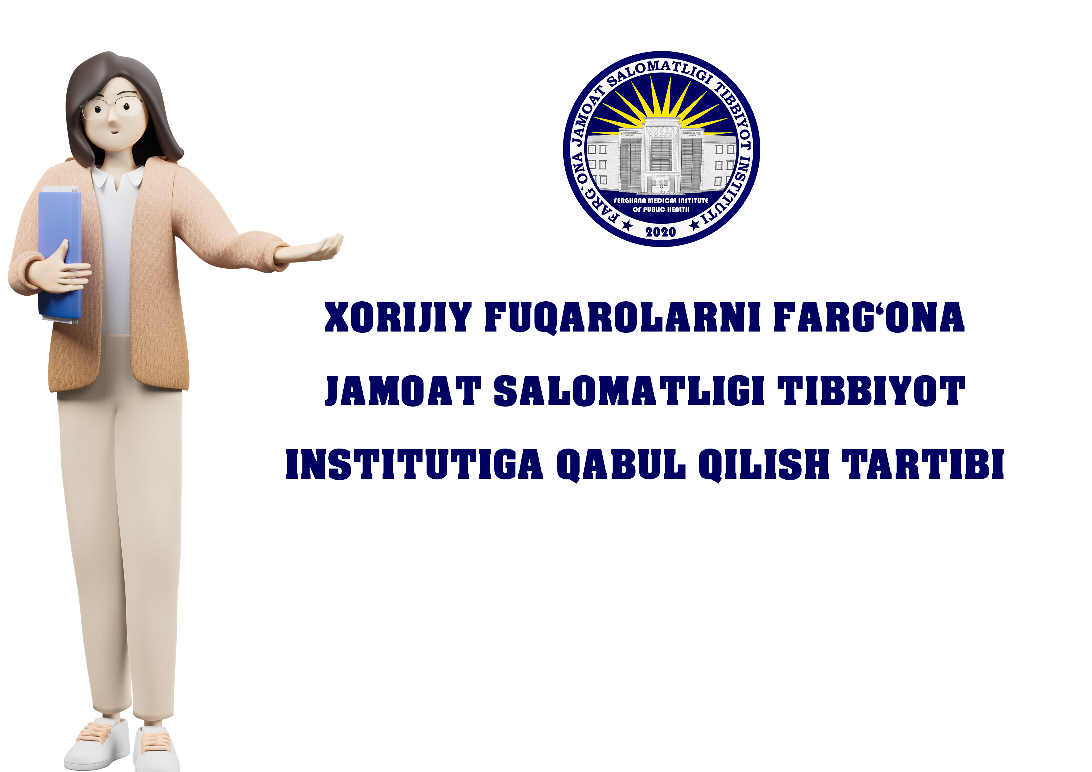 O‘zbekiston Respublikasi Vazirlar Mahkamasining 2019-yil 20-iyundagi 517-sonli Qarori bilan tasdiqlangan “Xorijiy fuqarolarni O‘zbekiston Respublikasi ta’lim muassasalariga o‘qishga qabul qilish va o‘qitish tartibi to‘g‘risidagi nizom” asosida Farg‘ona jamoat salomatligi tibbiyot institutiga xorijiy fuqarolar institut tomonidan belgilangan tartibda suhbat natijalariga ko‘ra qabul qilinadi.