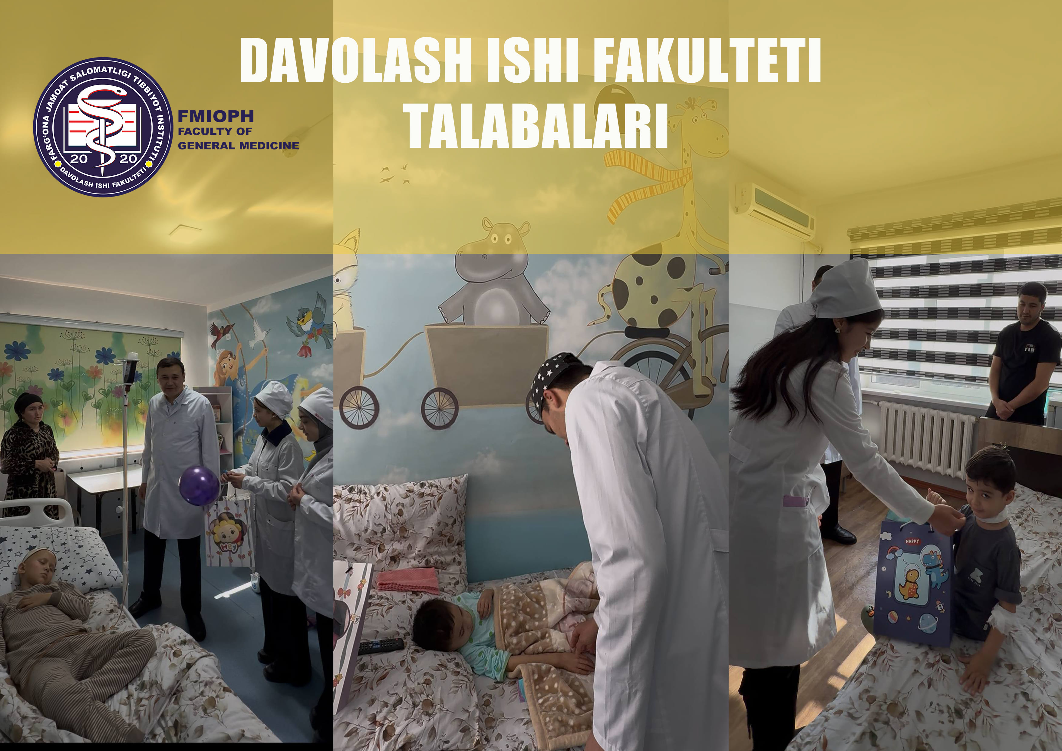 Farg‘ona jamoat salomatligi tibbiyot instituti Davolash ishi fakulteti dekani, talabalar hamda tyutorlar 15-fevral — Xalqaro bolalar saratoni kuni (International Childhood Cancer Day, ICCD) munosabati bilan Respublika ixtisoslashtirilgan onkologiya va radiologiya ilmiy-amaliy tibbiyot markazi Farg‘ona filialiga tashrif buyurishdi.